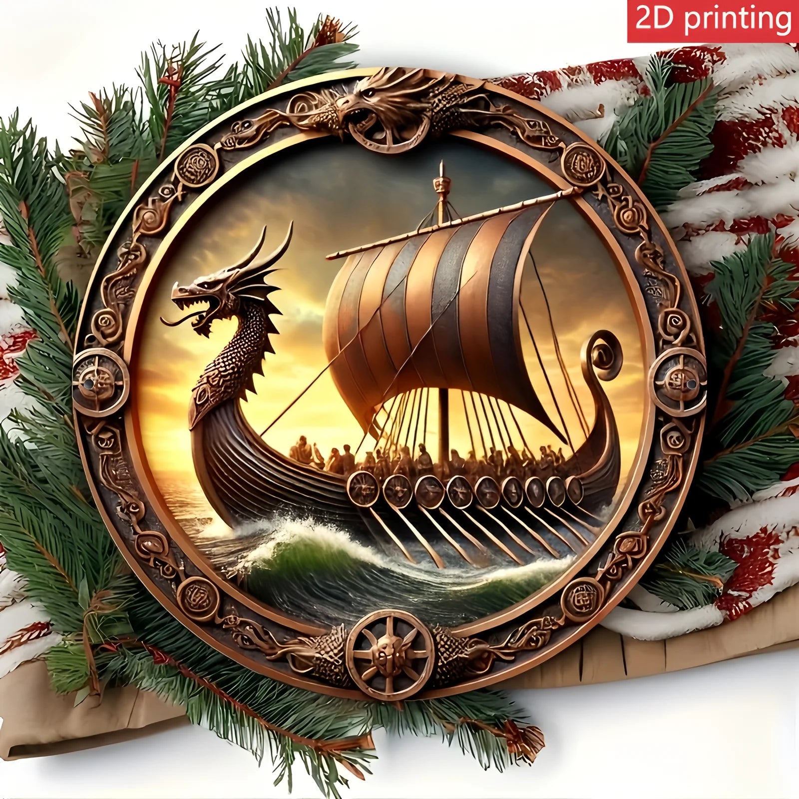 1 Piece 2D Viking Tap Ship Logo Wooden Disc 8 Inch For Bedroom Living Room Home Restaurant Bar Coffee Shop Garage Room