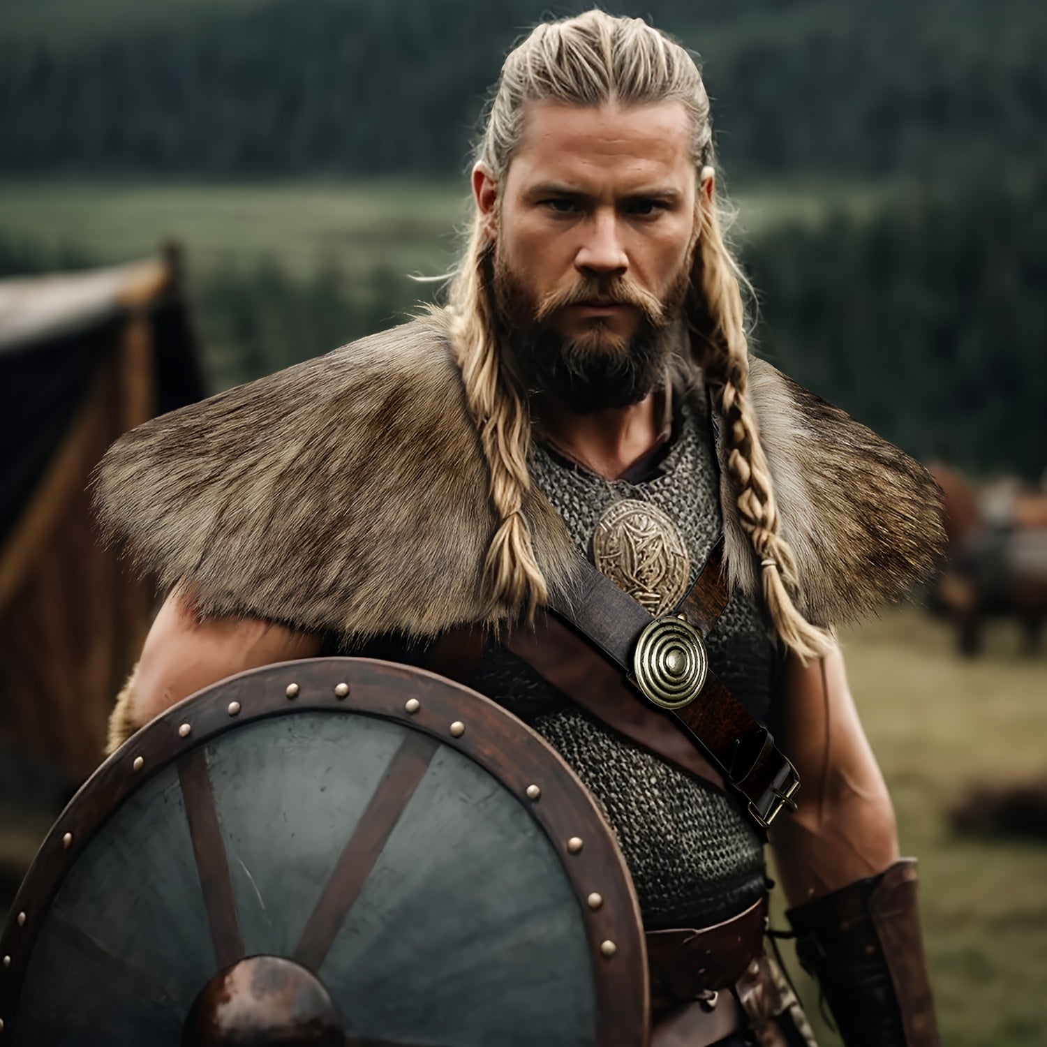 1 Set Medieval Warrior Costume - Fur Shawl with Belt, Fur Mantle, and Fur Collar, Viking-Inspired LARP Attire with Authentic Details