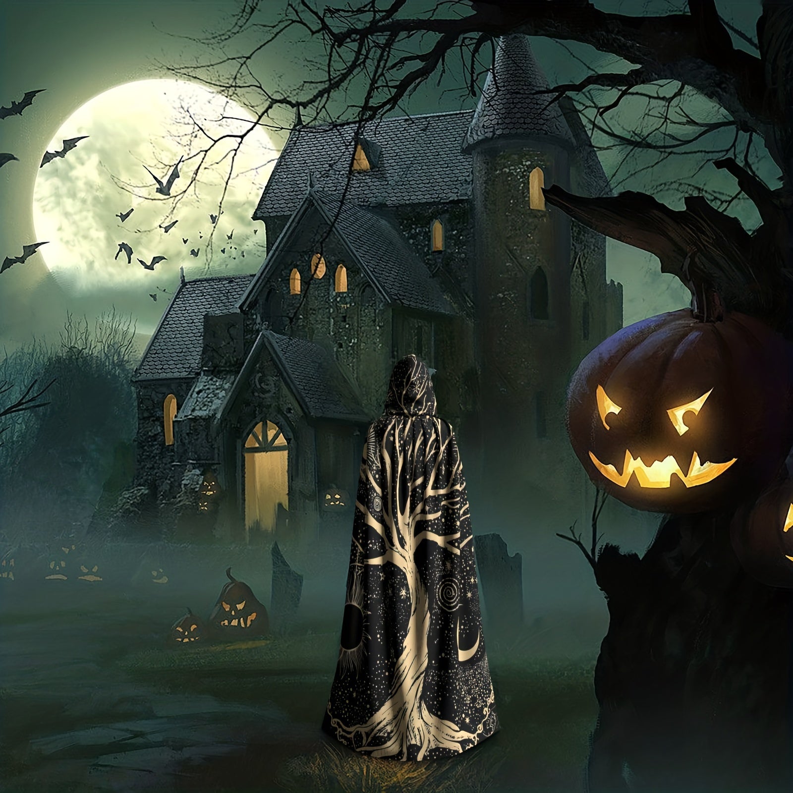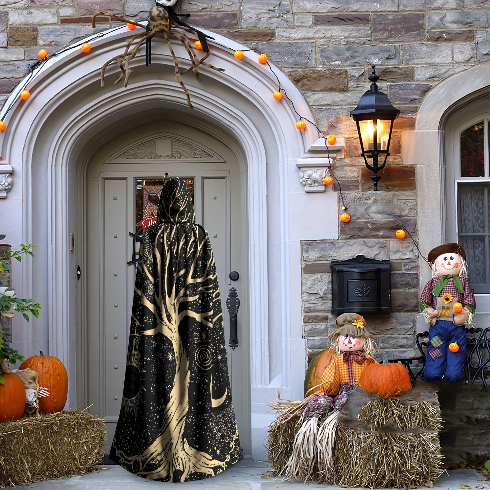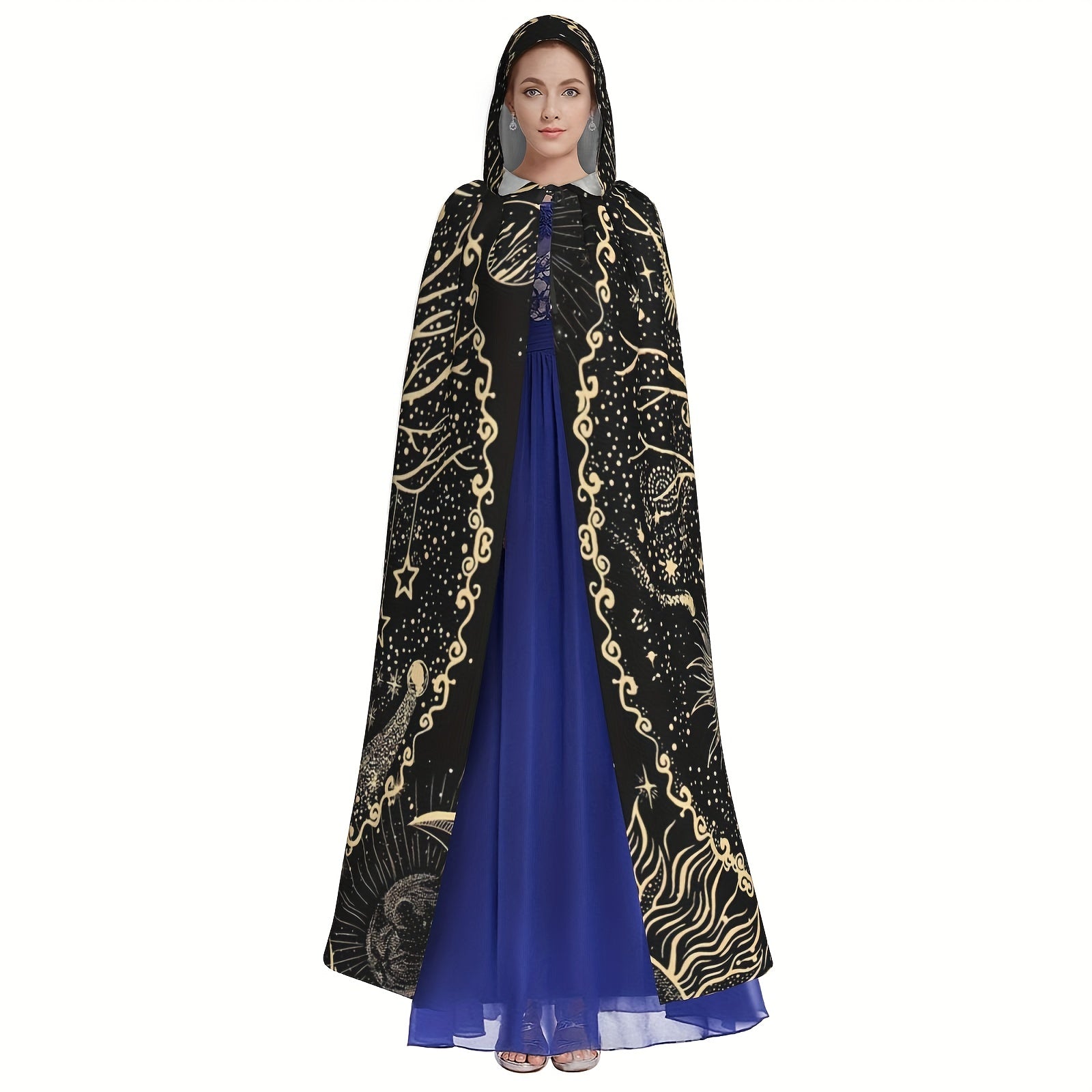 1pc, Nordic Style Viking Goddess Tenacious Life Tree Sun And Moon Black And White Star, Hooded Robe Cloak Shawl Cosplay For Adult Men Women, Party Favors Supplies Dresses Clothes Gifts, 58*60inch