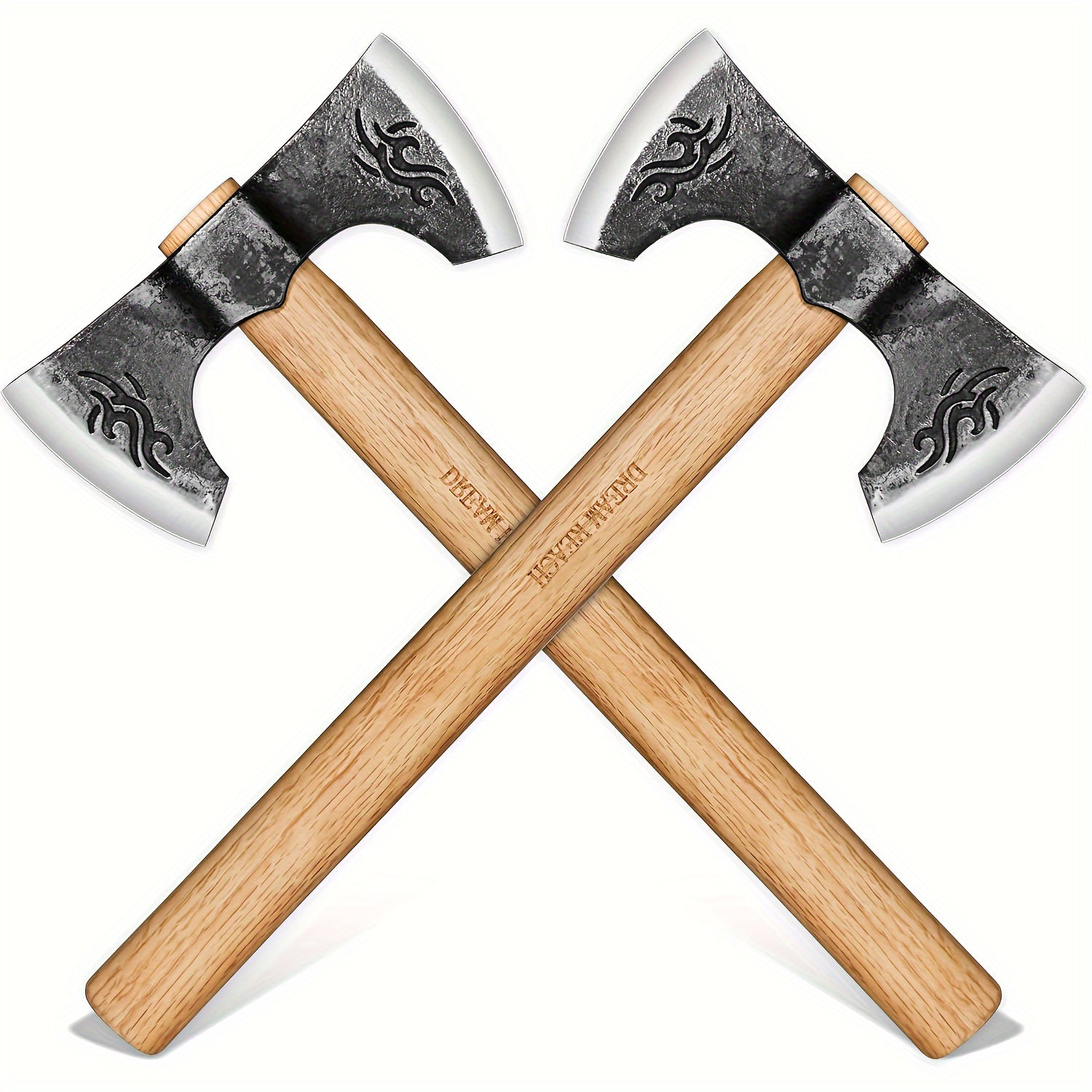 2-Pack Viking Axe Set - Hand Forged, Double Sided, 16" Professional Axes with Wooden Handle for Chopping Wood, Gardening, Bushcraft, Carving, and Backyard Projects - Durable, Rust-Resistant, and Balanced for Efficient Use