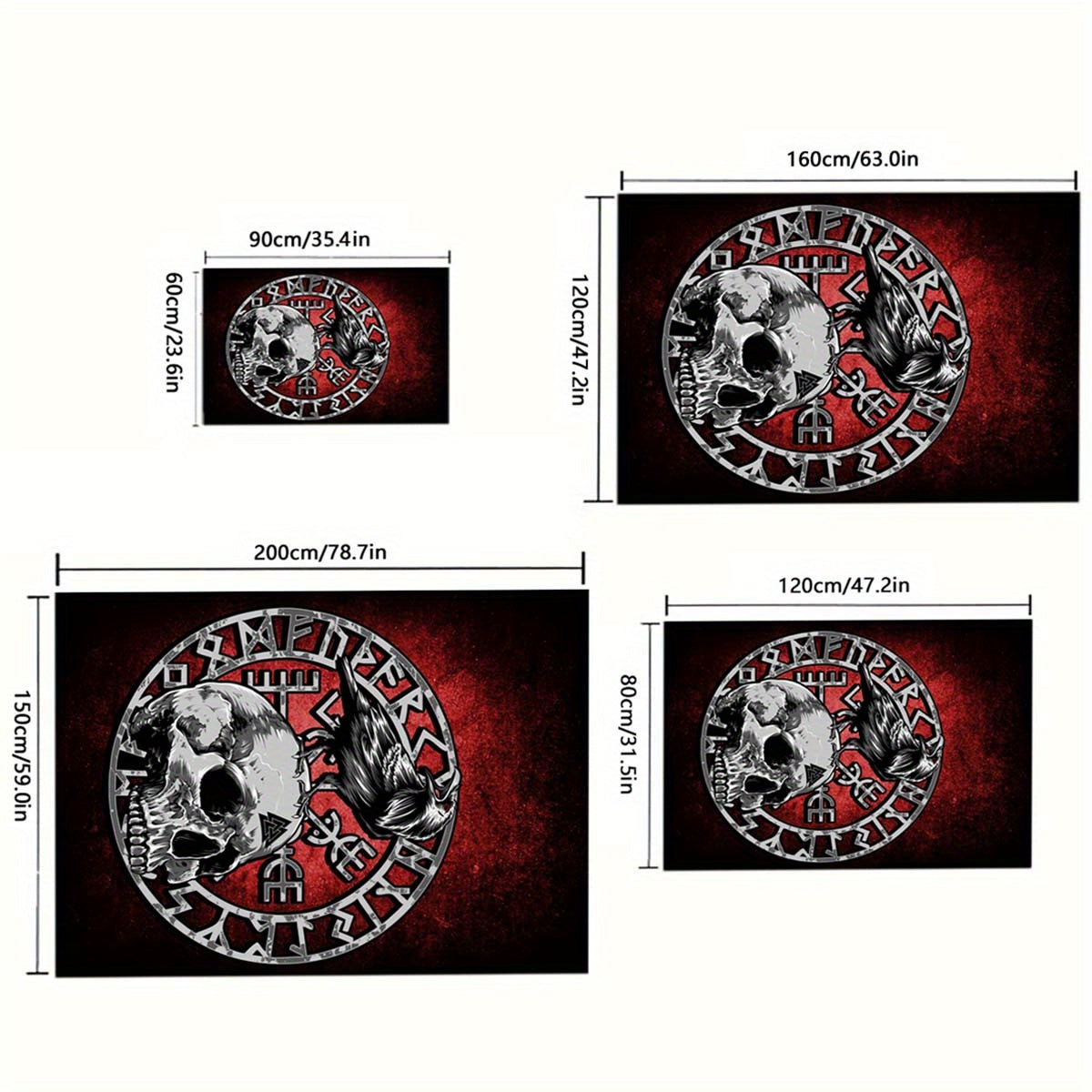 Boho Black Viking Carpet: Retro Raven Tarot Witchcraft Floor Mat for Bedroom, Living Room, Dorm, Halloween Decor - Abstract Wall Art Rug with Mysterious and Witchcraft Design