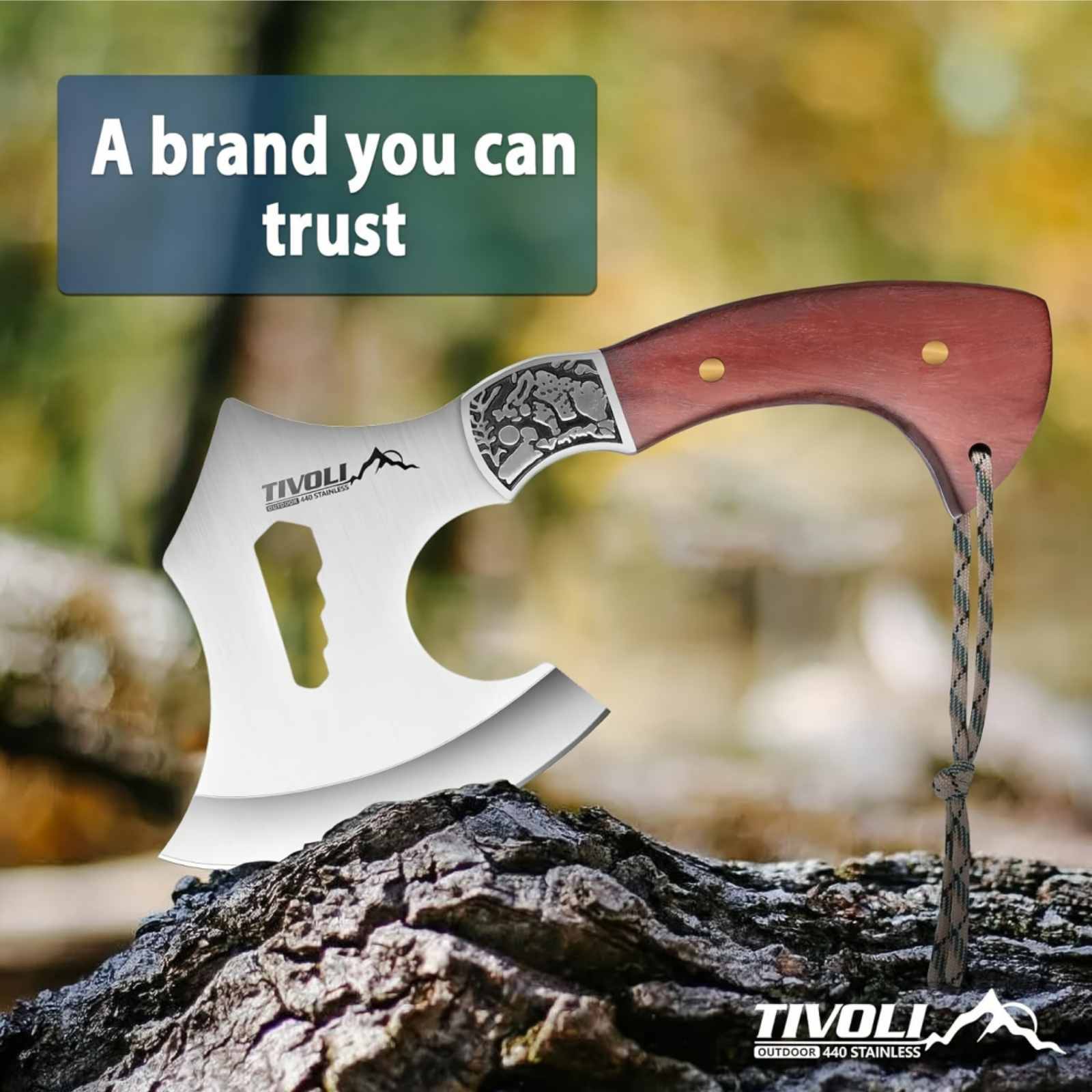 Hatchet Axe With Nylon Sheath, Camping Hatchet Viking Axe With Wood Handle, Portable Survival Axe With Gift Box Small Hatchet For Camping Outdoor Gardening