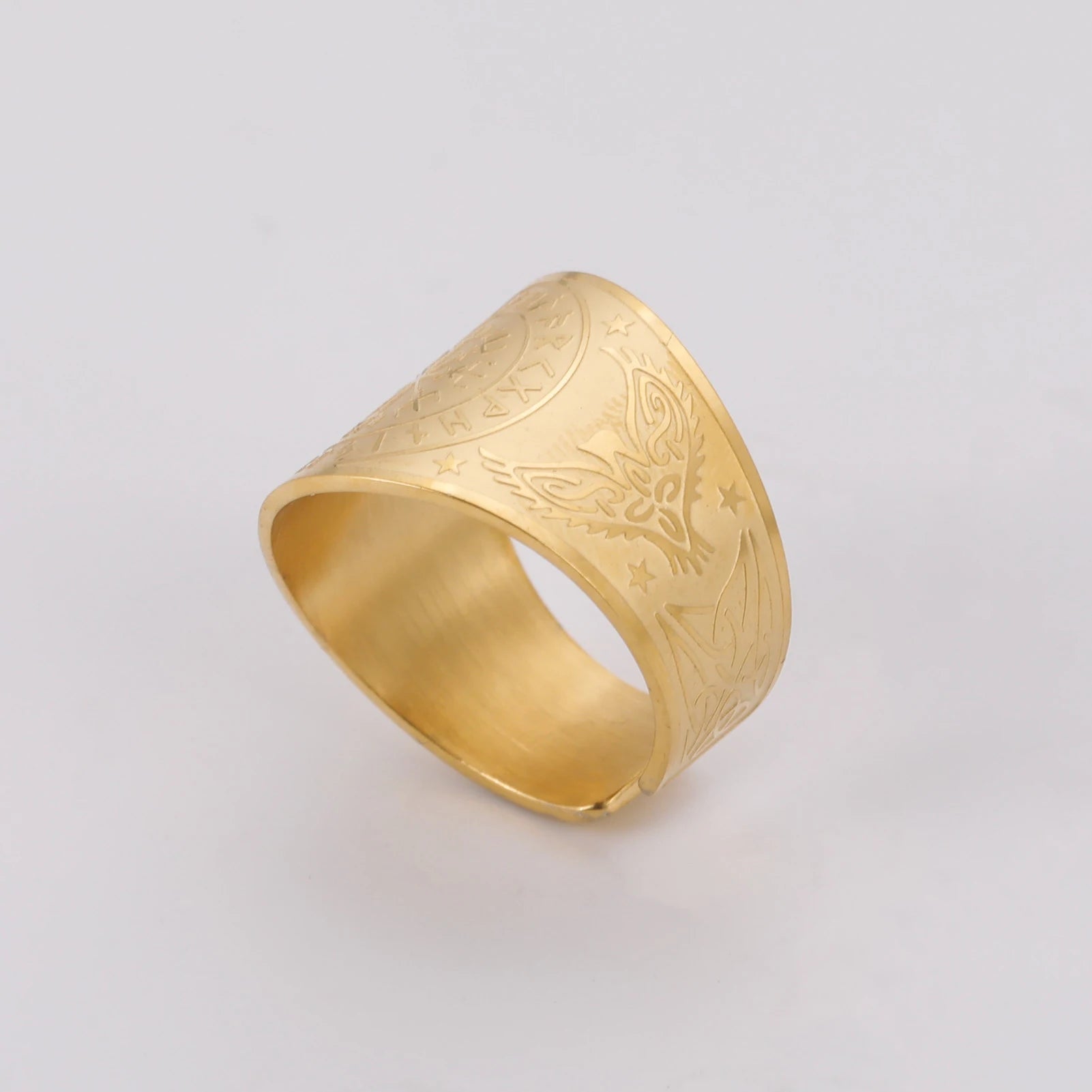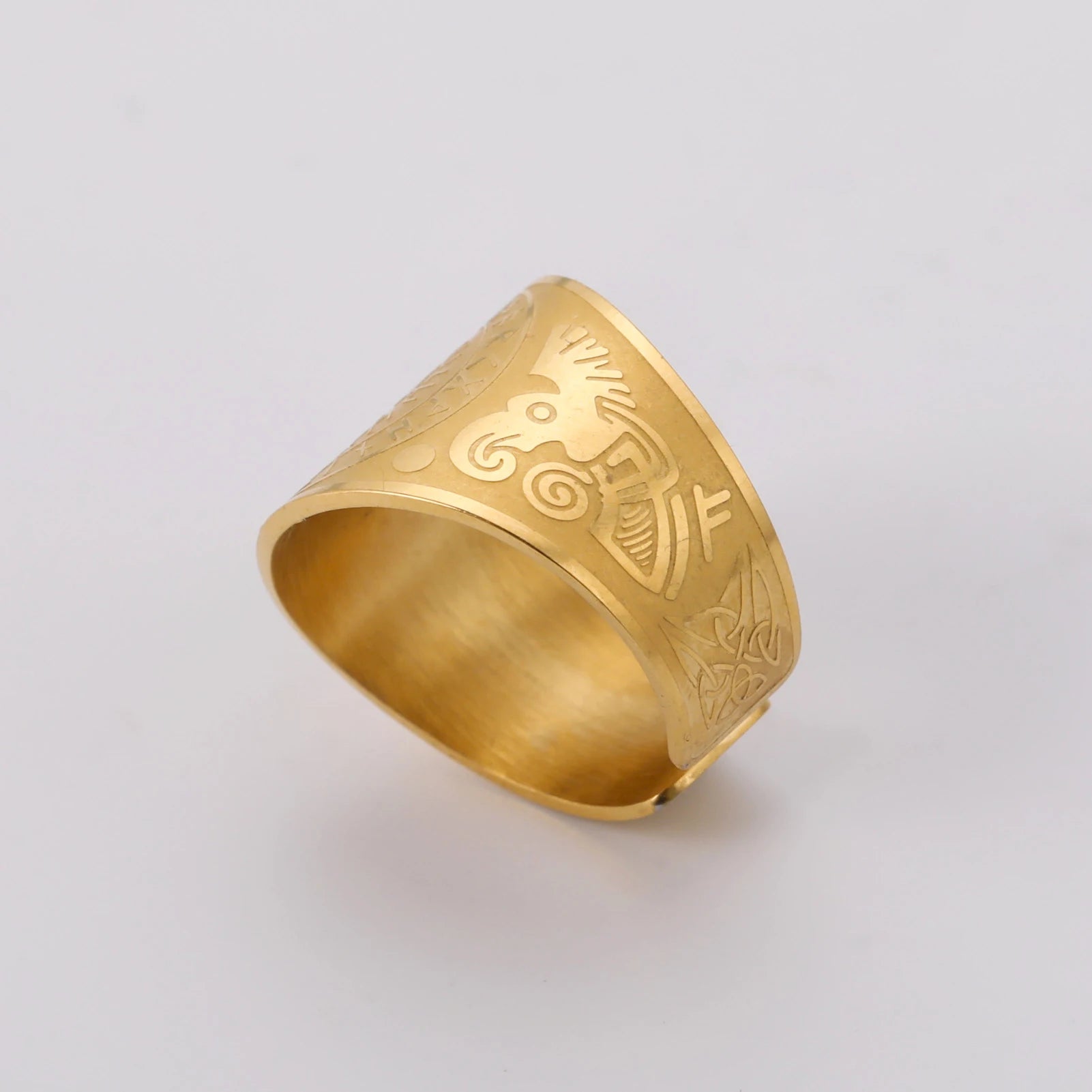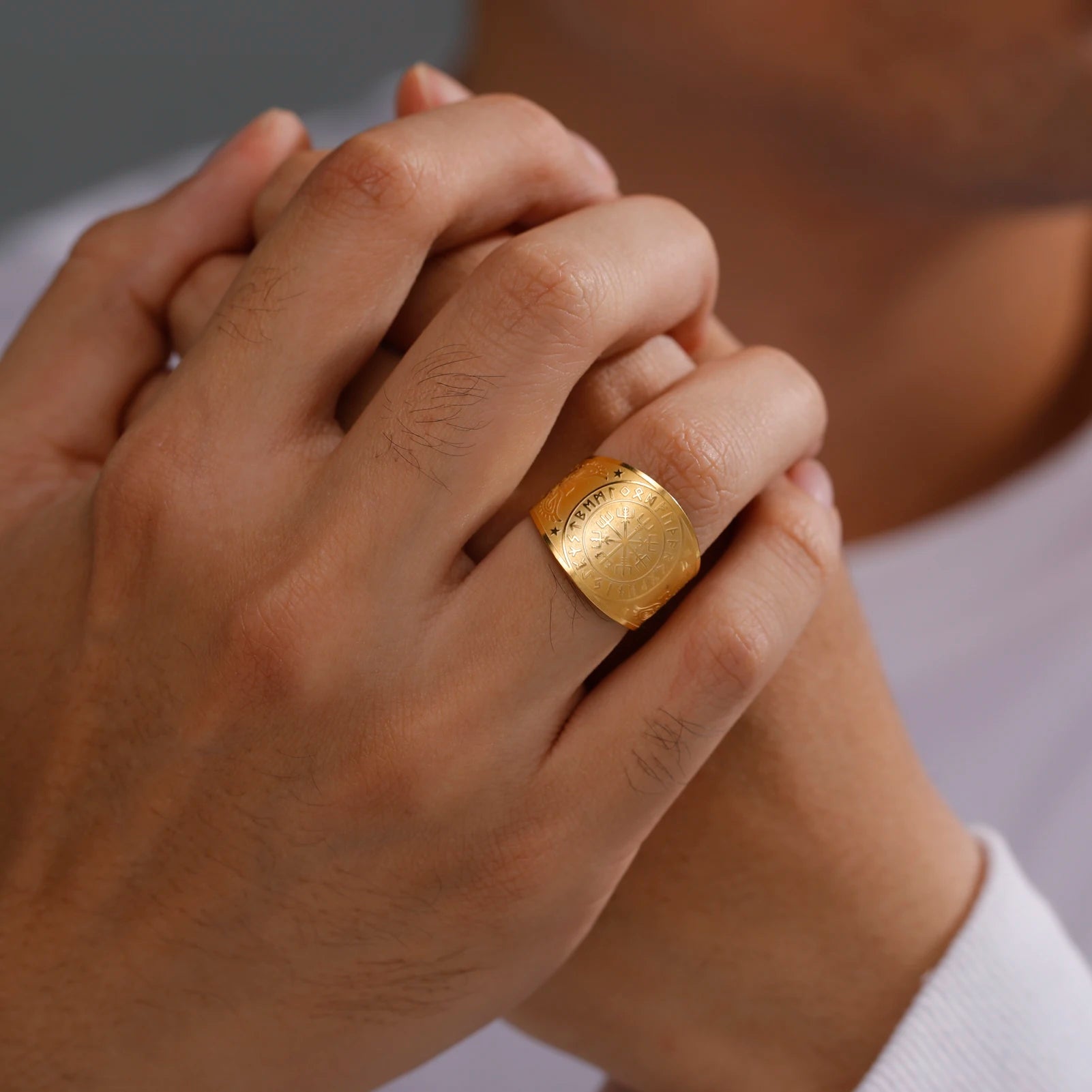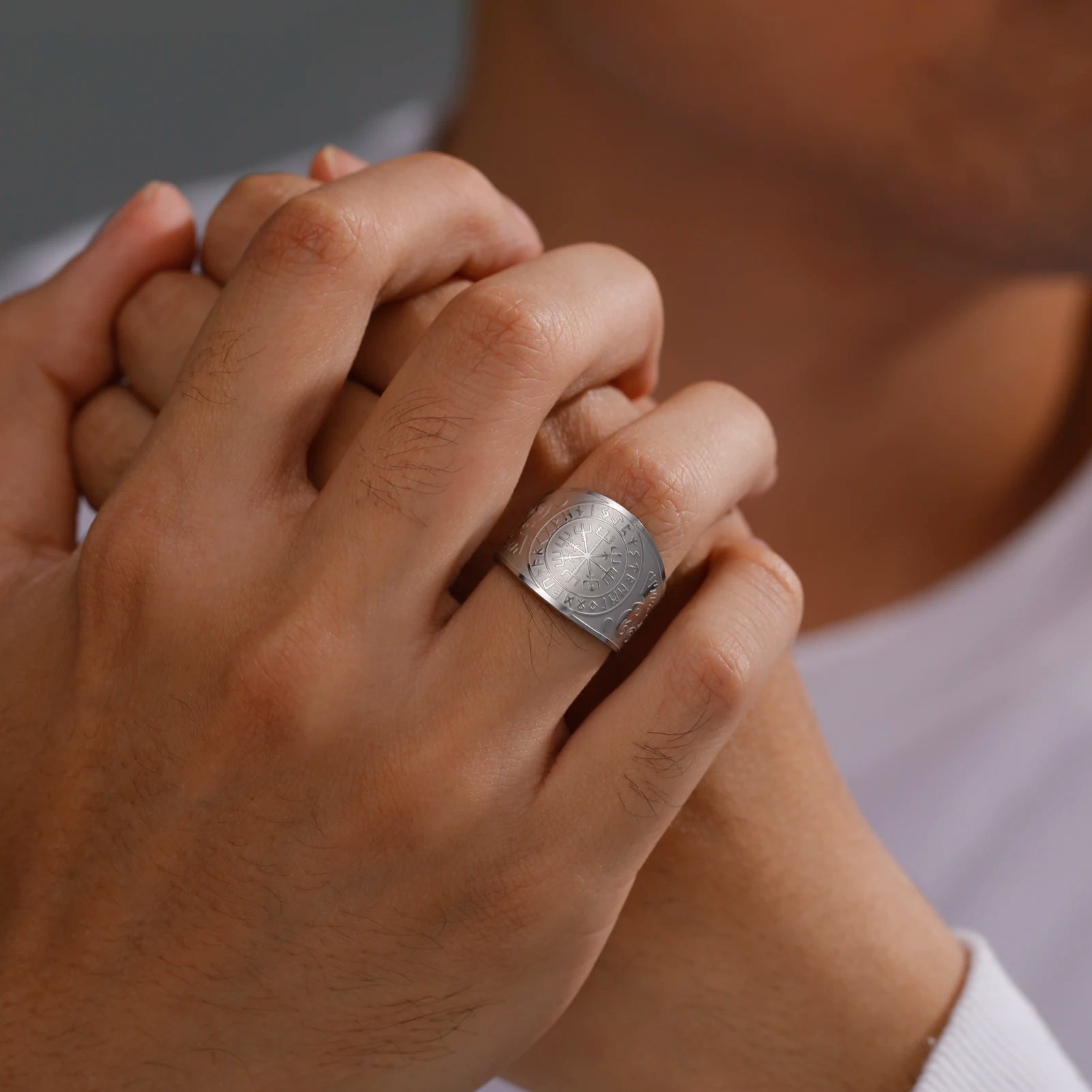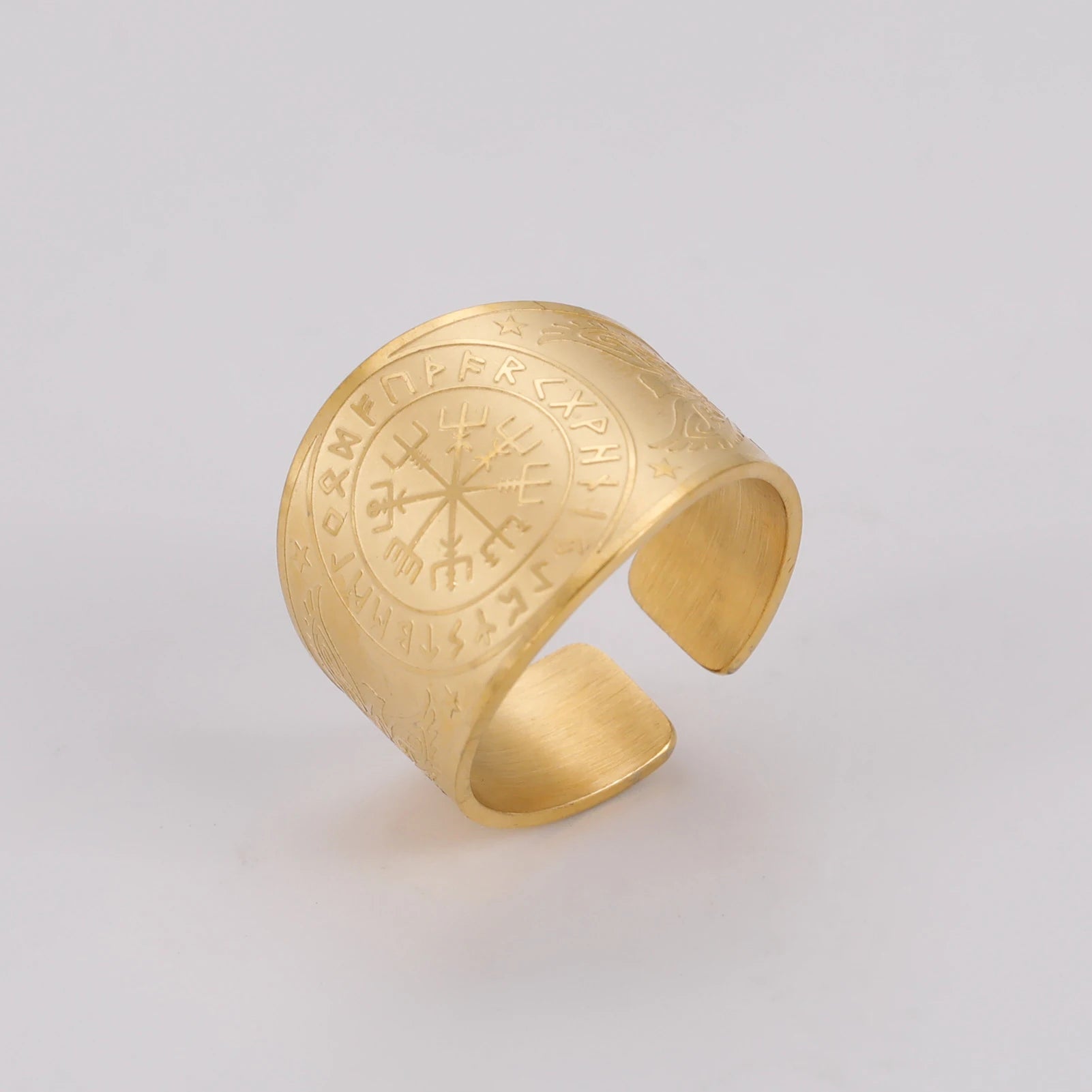 LIKGREAT Viking Compass Vegvisir Ring Helm of Awe Nordic Rune Scandinavian Amulet Stainless Steel Jewelry New Year Gift