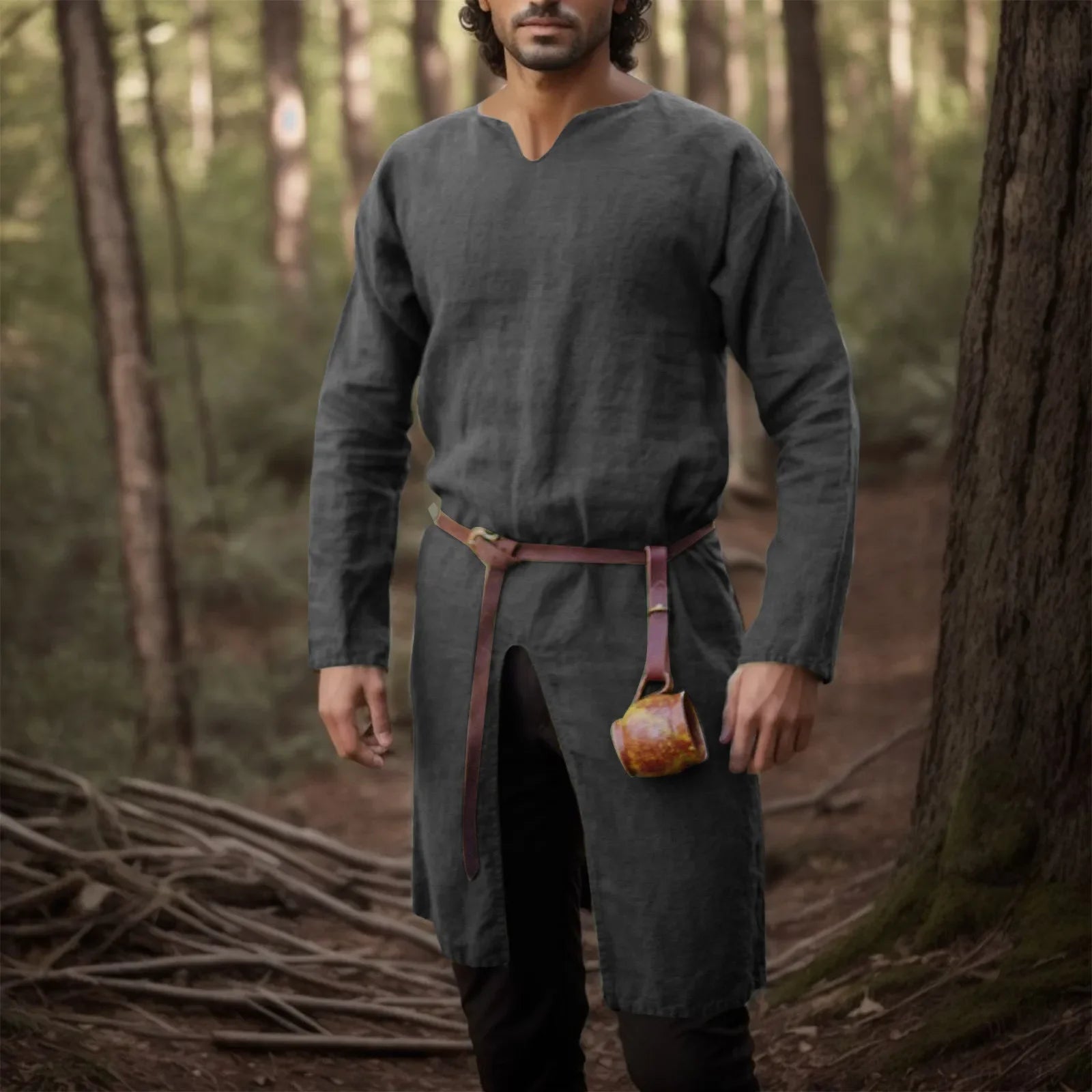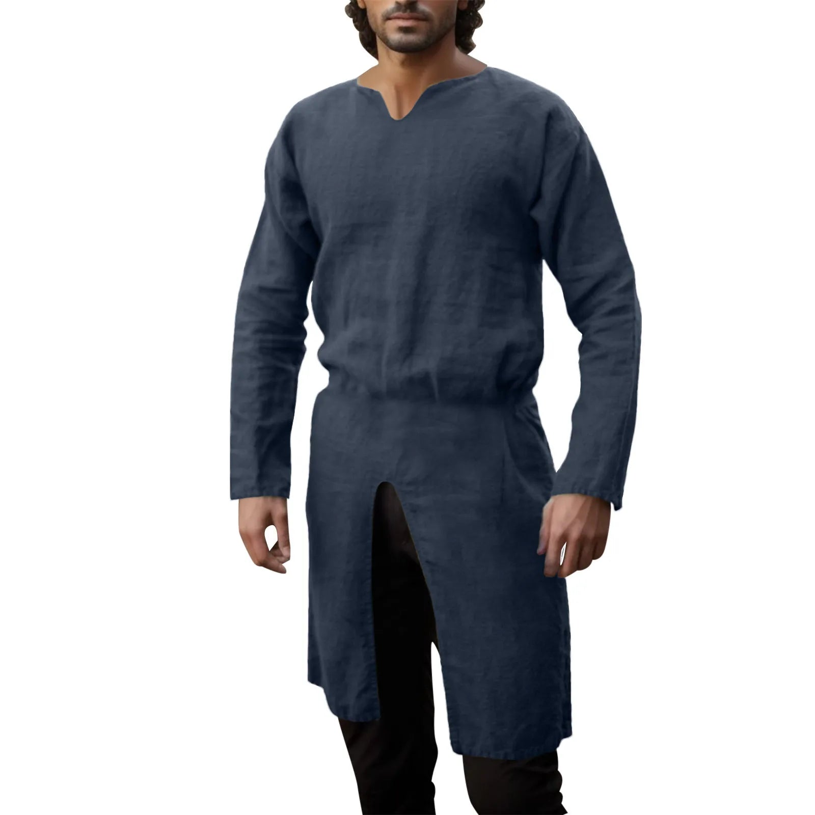 Medieval Renaissance Retro Linen Shirt Tops Tunic Male Long Robes Dress Vintage Jackets Knight Vikings Pirate Cosplay Costumes