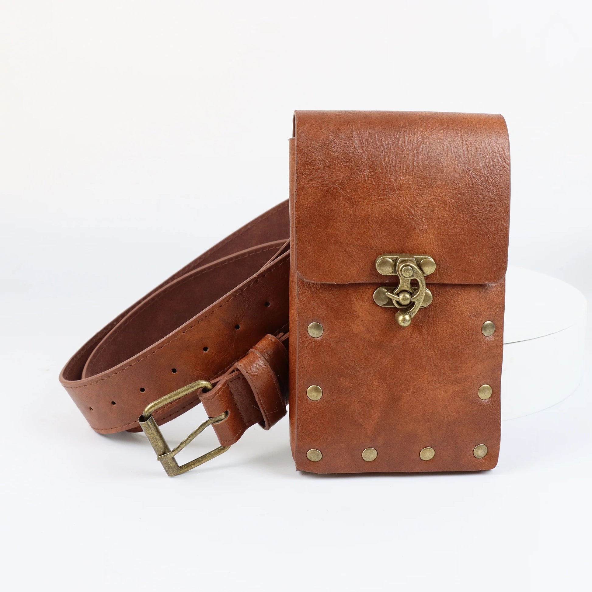 Medieval Role Playing Retro Belt Renaissance Copper Coin Waist Bag Viking Knight Skirt Clip Keychain Halloween Role Playing Prop