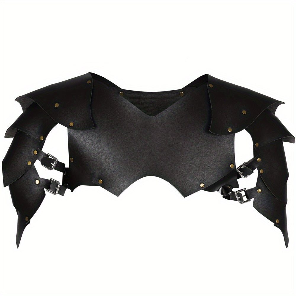 Medieval Viking Knight & Roman Legion Gladiator PU Leather Pauldrons - Funky Style Shoulder Armor Breastplate with Golden Rivets, LARP Cosplay Costume Accessory for Historical Reenactment Props