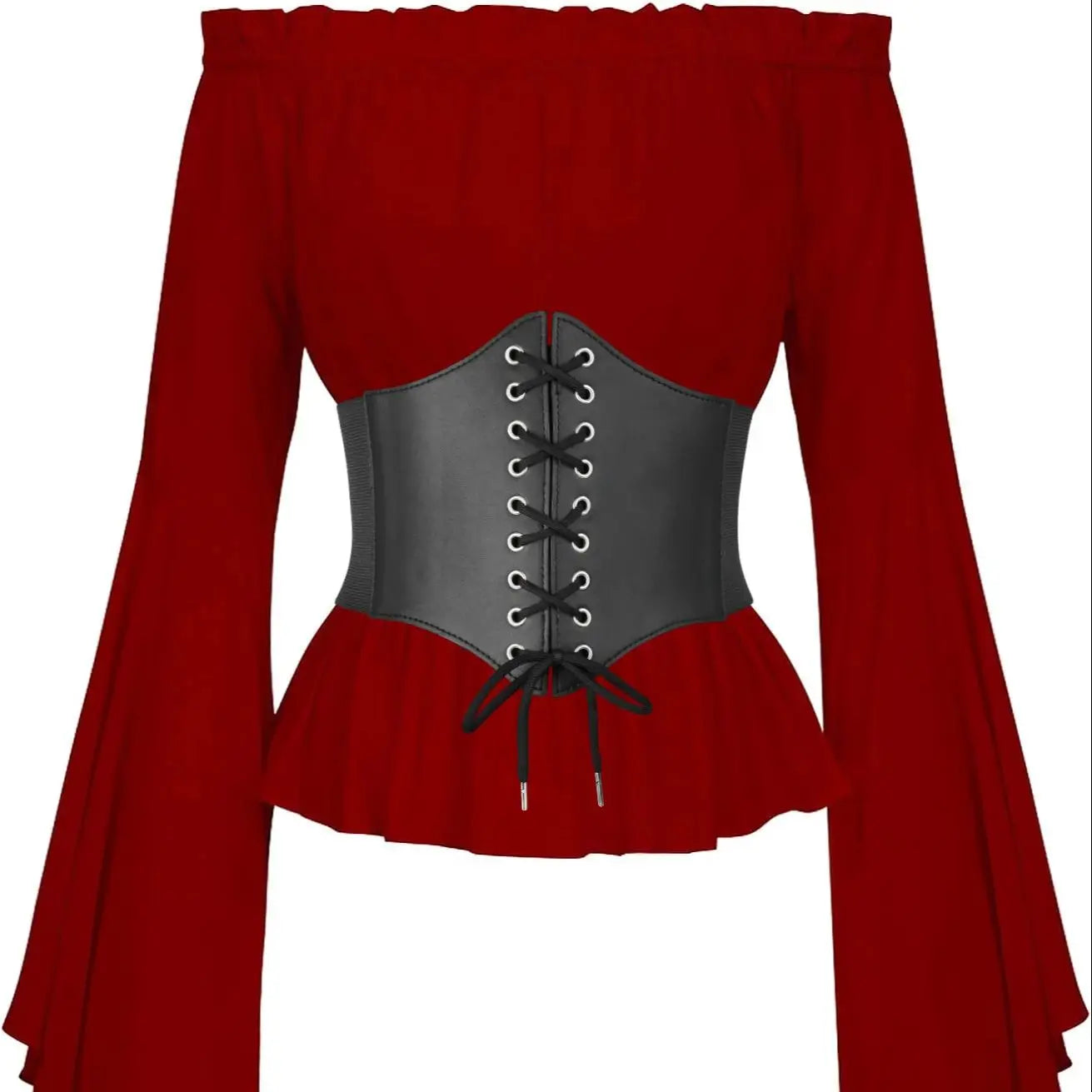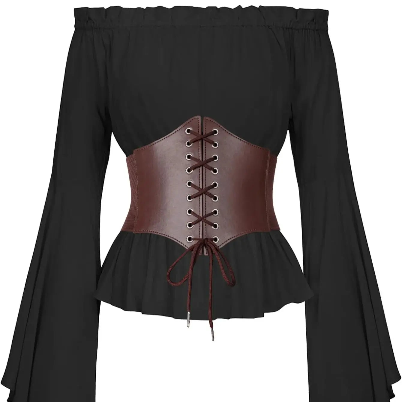 Medieval Waist Belt Brown Elastic Bind Belt Trendy Decoration Women Retro Viking Renaissance Dress Accessory For Cosplay Prop