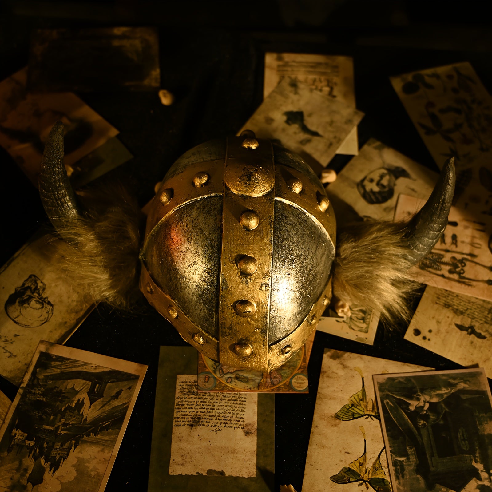Scary Viking Hat Mask - Medieval Viking Costume Party Accessory with Horns, Synthetic Faux Leather Viking Helmet for Halloween, Cosplay, Viking Costume Women, Viking Helmet, Scary Mask, Halloween Mask