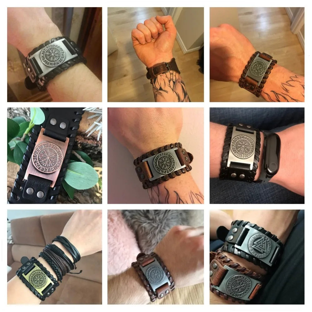 Skyrim Viking Vegvisir Compass Genuine Leather Bracelet for Man Nordic Runes Odin Scandinavian Bangle Amulet Jewelry Gift