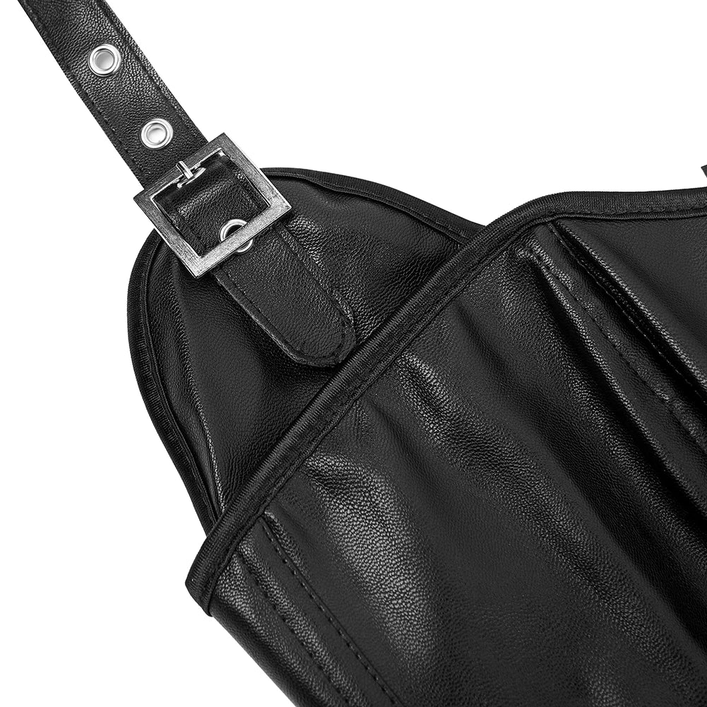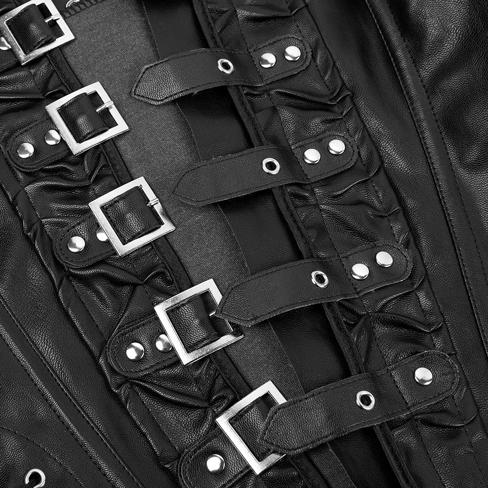 Steampunk Halterneck Overbust Corset Corselet Black Brown Basques Faux Leather Bustier Top