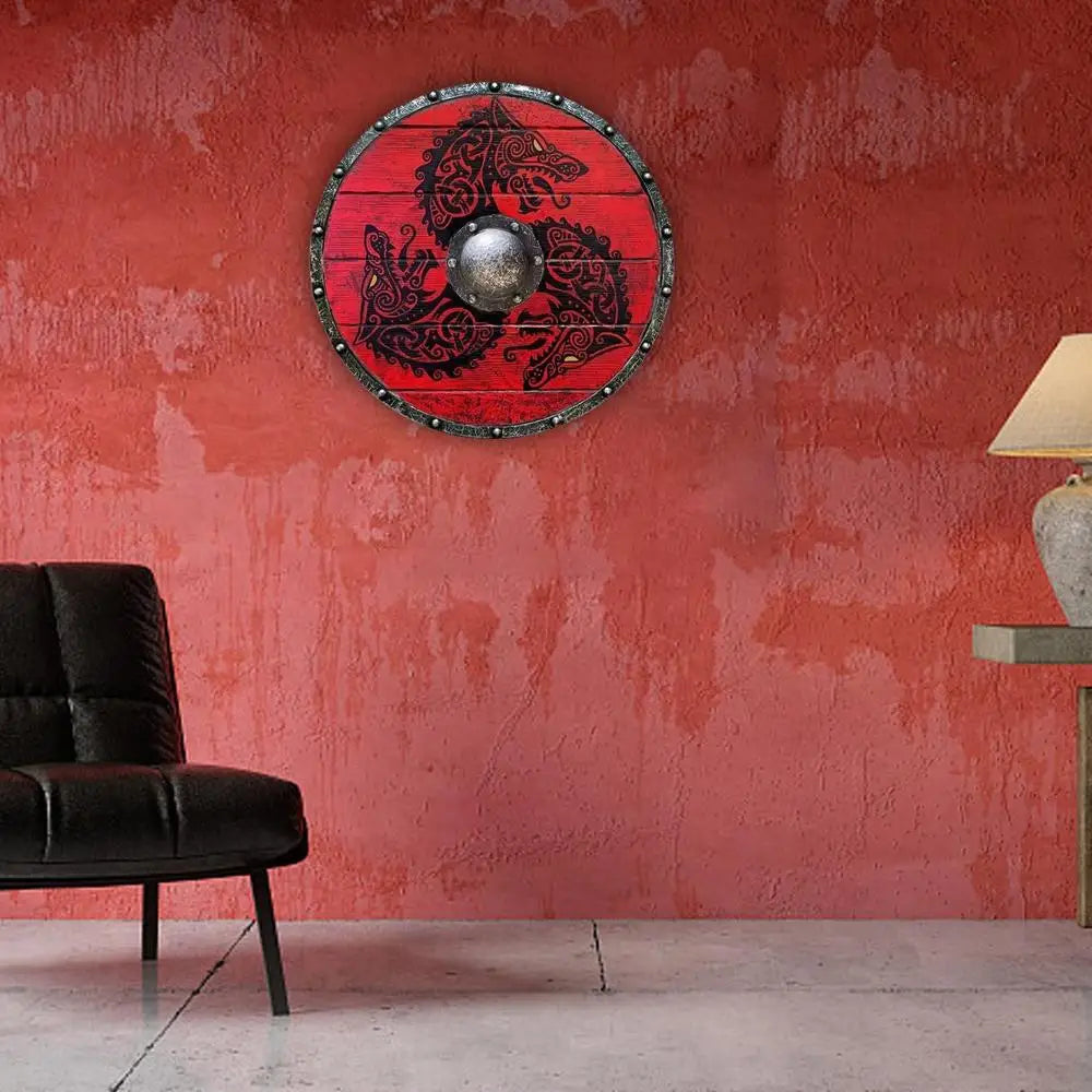 Unique Medieval Wood Sign Viking Wolf Warrior Handcrafted Battle Ready Shield Medieval Viking Warrior Shield Wall Hanging Decor