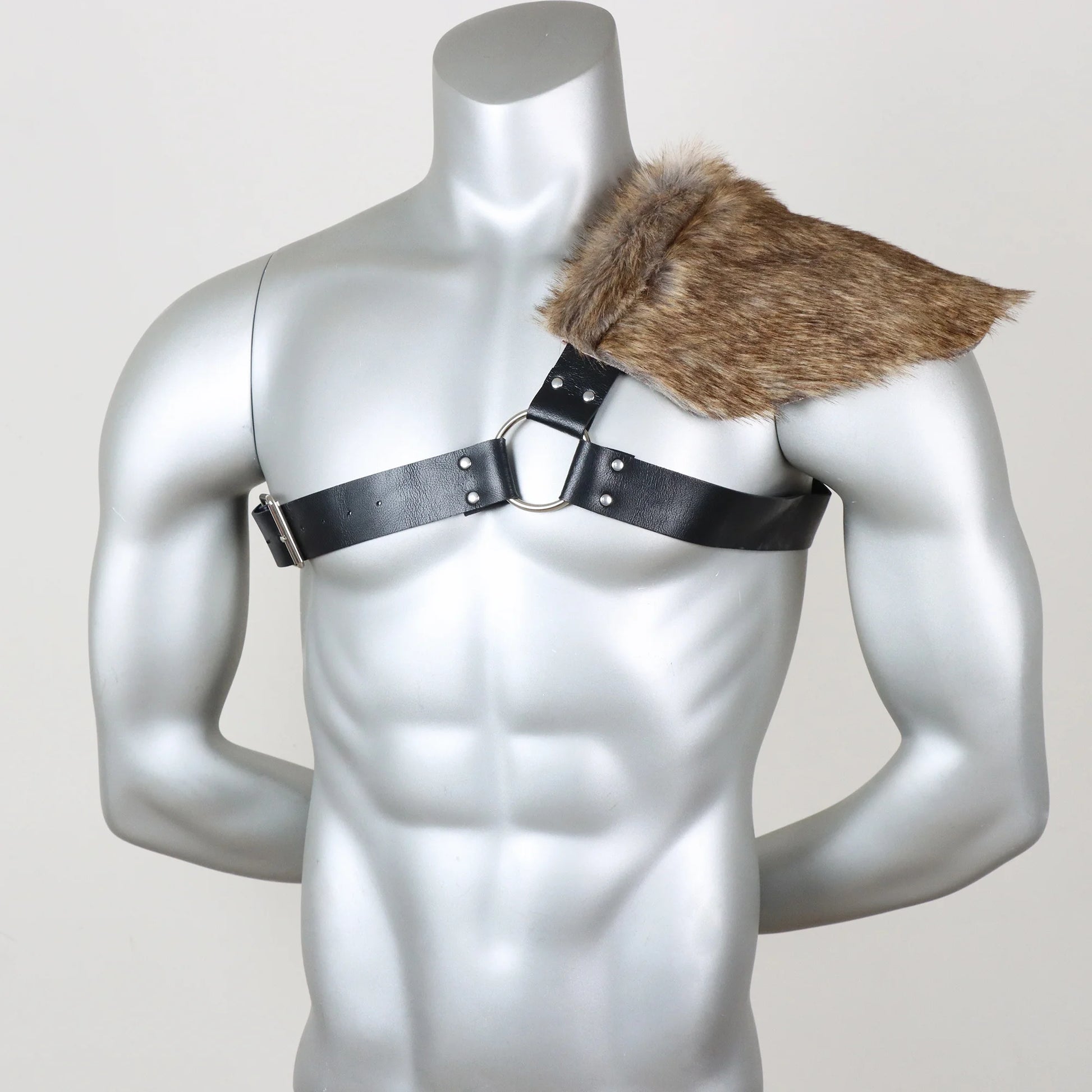 UYEE Man Medieval Viking Fur Wrap Drape Shawl Barbarian Shoulder Cowl Mantle with Chest Belt Fur Capelet for Viking
