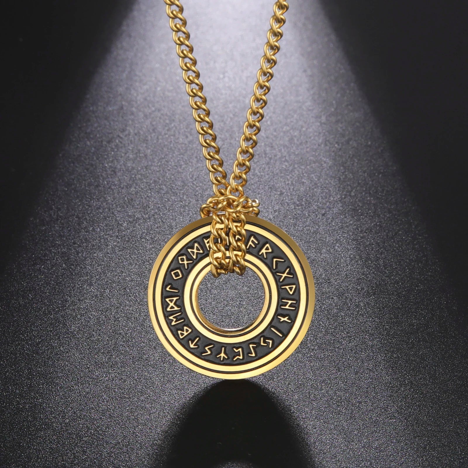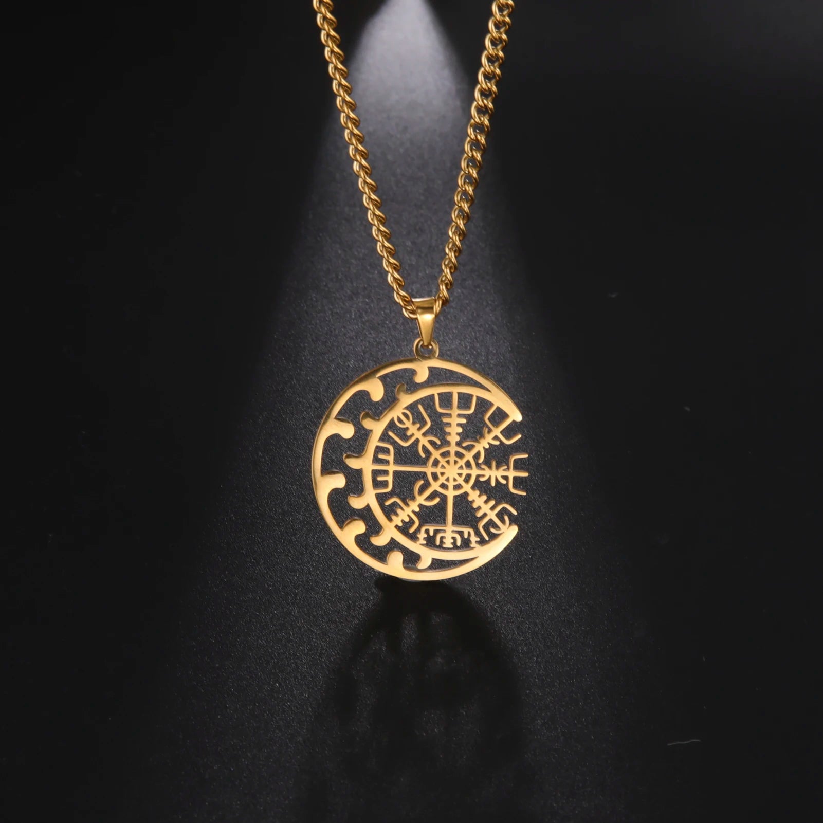 Viking Nordic 24 Rune Compass Pendant Necklace Stainless Steel Trinity Triquetra Hollow Witch Knot Symbol Amulet Jewelry Gift