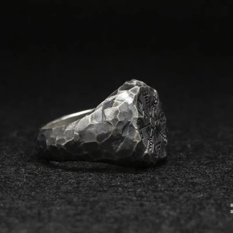 Viking Rune Symbol Rings for Women Men Vintage Compass Stone Meditation Ring Trendy Jewelry Gifts Open Ring Adjustable