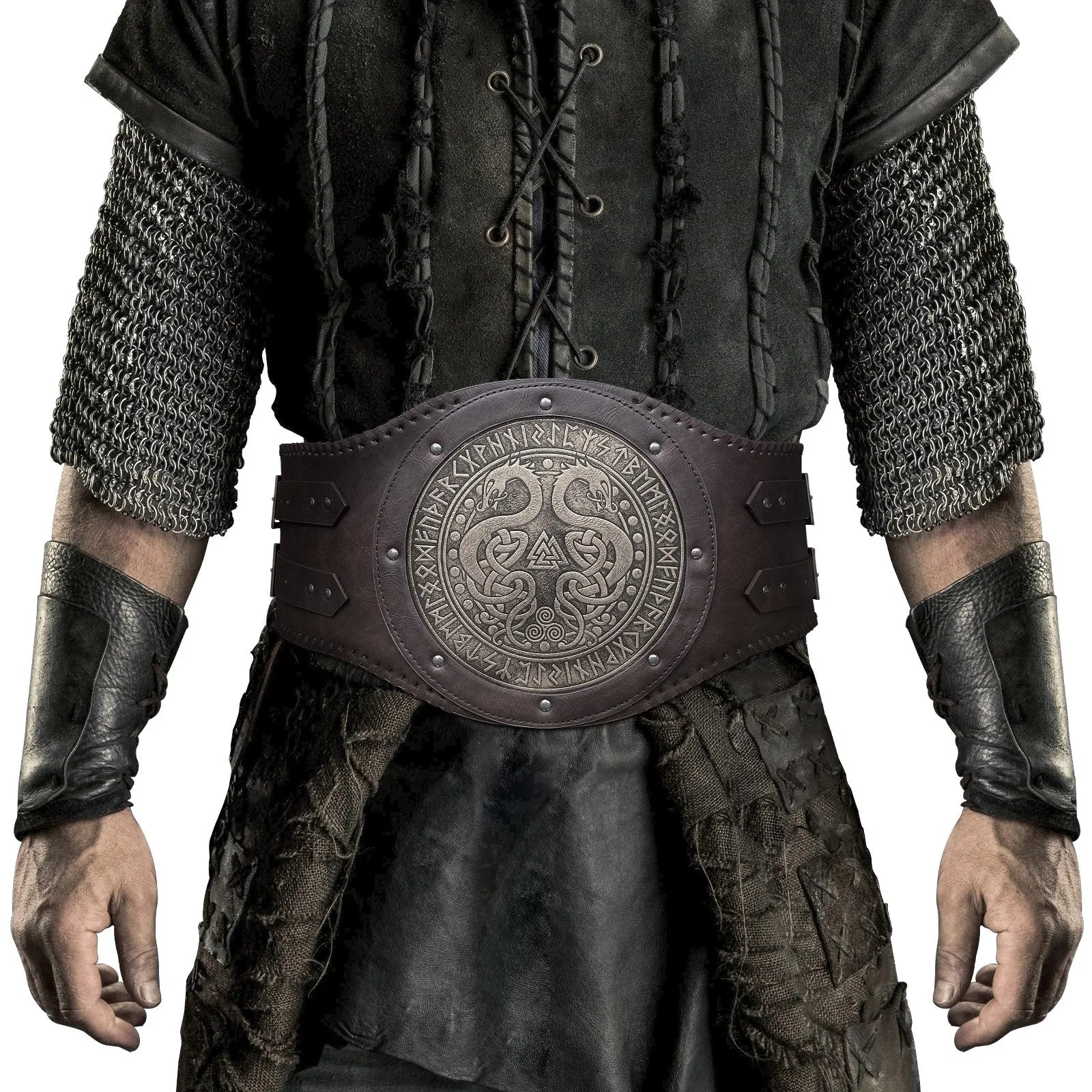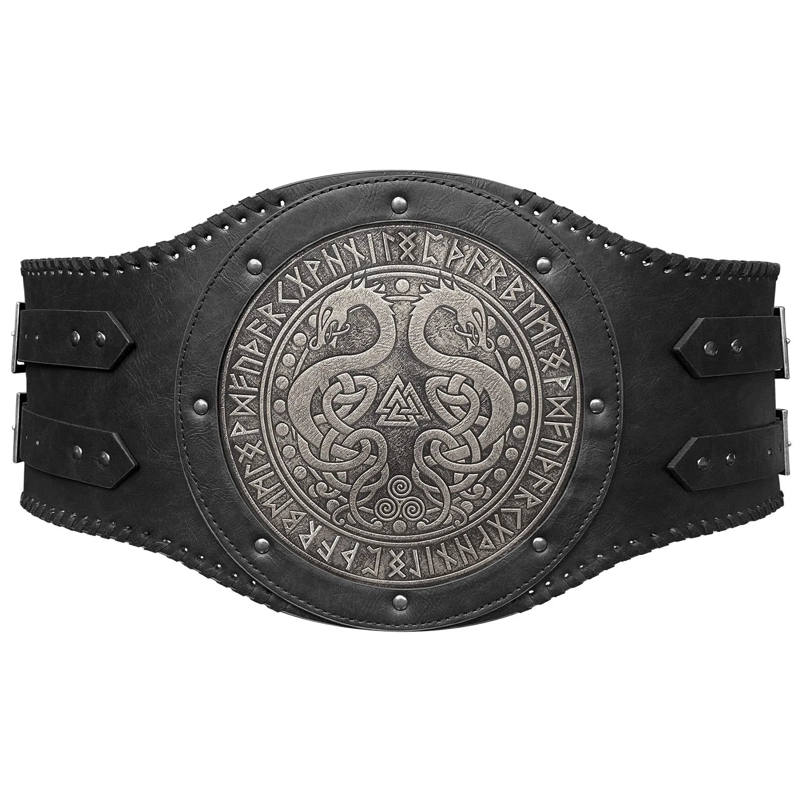 Viking style wide embossed PU leather belt with medieval Nordic style Renaissance knight armor waist belt accessory suitable f